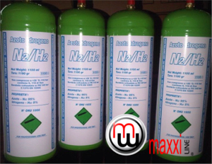 MaxxiLine Disposable 95% Nitrogen 5% Hydrogen (N2H2) Cylinders are available in four sizes: 1 Litre (0,11m3 compressed gas), 1.2 Litre (0,12m3 compressed gas), 1.8 Litre (0,16m3 compressed gas), 2.2 Litre (0,22m3 compressed gas).